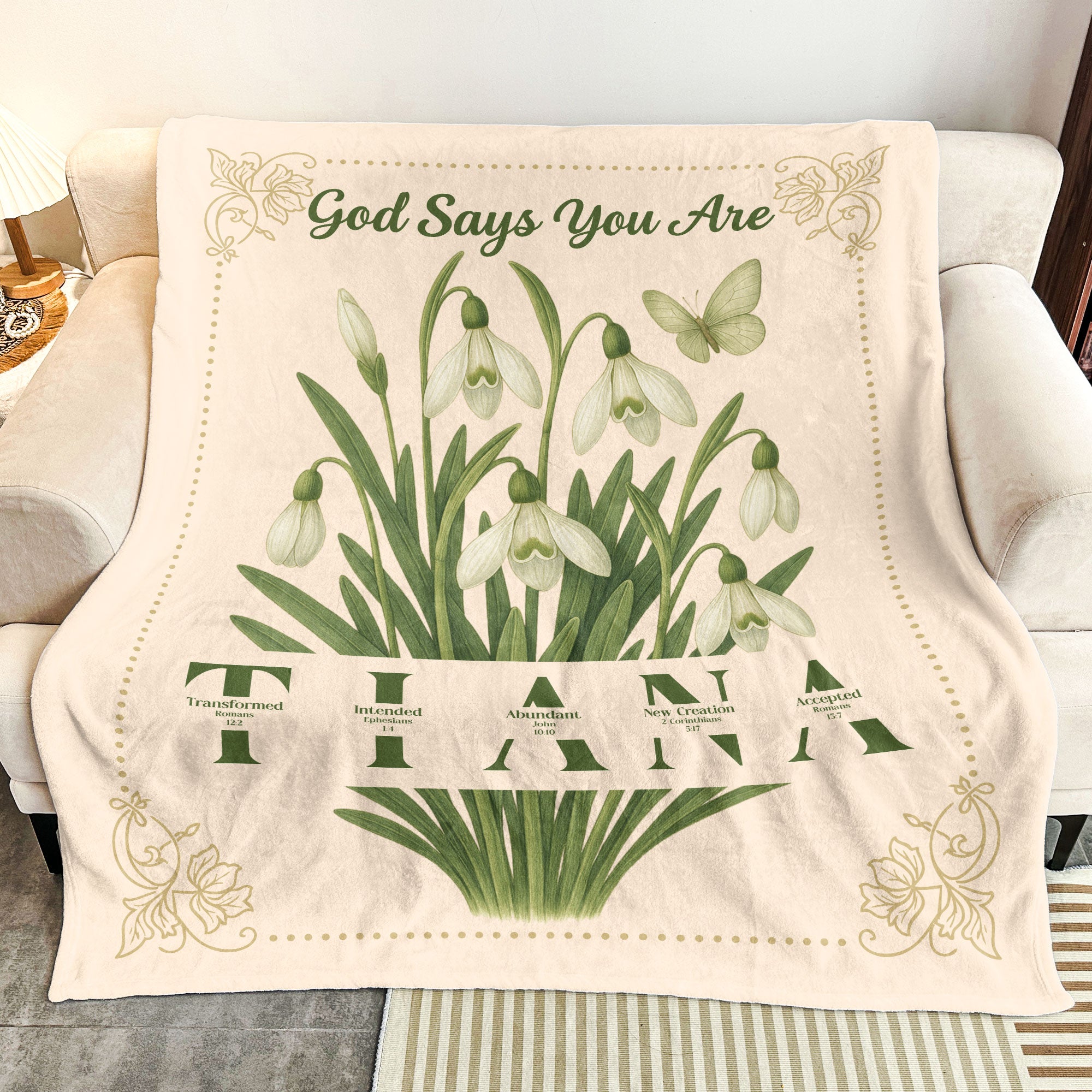 Suitable for many gift occasions, whether it’s a birthday, Christmas, anniversary, or any other special event, this blanket stands as a beautiful and thoughtful token. This personalized blanket can be used as a stylish throw on your couch or an extra layer of warmth on your bed, enhancing your space while offering comfort. Each use will remind the recipient of the thoughtful giver and the sentiments shared between them. Make this unique, personalized blanket an addition to your home or as a comforting gift for someone special today. Don’t wait, show your faith and individuality with this personalized blanket