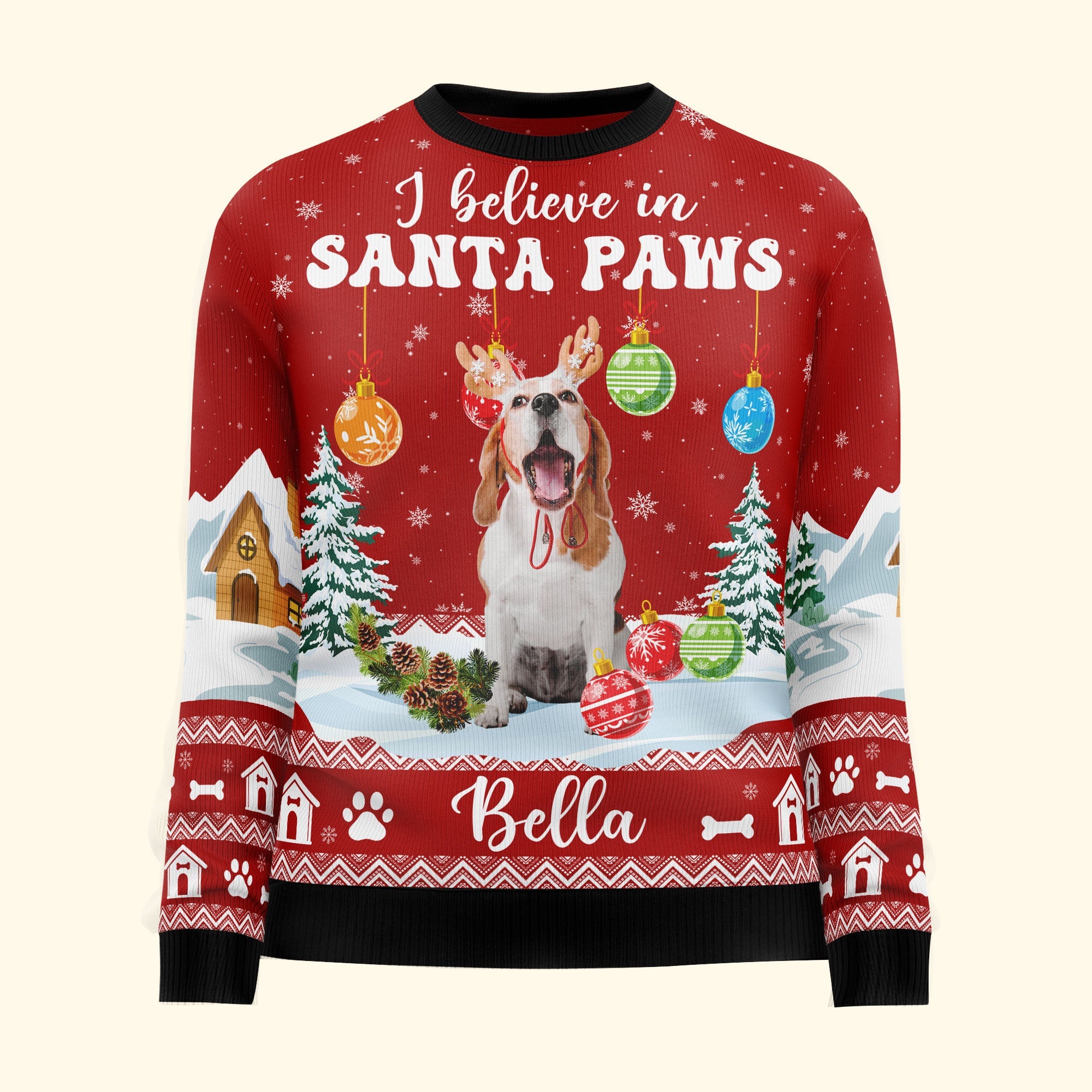 Stand out this Christmas in a custom holiday sweater! Personalize I believe in santa paws sweatshirts with your pet’s name, or festive prints for a unique look. Give the gift of personalized style with custom Christmas sweaters for family and friends!