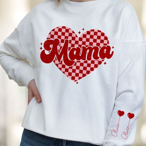 This Mama Wear Her Heart On Her Sleeve – Personalized Sweatshirt